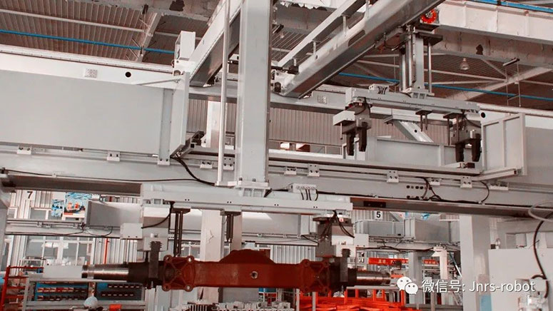 巨能機(jī)器人針對(duì)商用車車橋橋殼單機(jī)加工效率低、零件無法自動(dòng)兼容、混線生產(chǎn)等問題,研制了龍門結(jié)構(gòu)的橋殼上下料重型桁架機(jī)器人。近日,產(chǎn)品通過了自治區(qū)新產(chǎn)品鑒定評(píng)審,獲得鑒定證書。