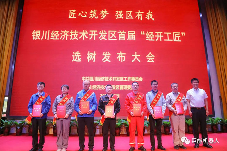 5月30日上午,銀川經(jīng)開區(qū)數(shù)字經(jīng)濟產(chǎn)業(yè)園報告廳內(nèi)掌聲雷動、“匠”星閃耀,首屆“經(jīng)開工匠”選樹發(fā)布大會在這里隆重召開,園區(qū)來自不同行業(yè)20名產(chǎn)業(yè)工人被選樹為“經(jīng)開工匠”。巨能公司機械設(shè)計部部長董德被評為“經(jīng)開工匠”稱號。