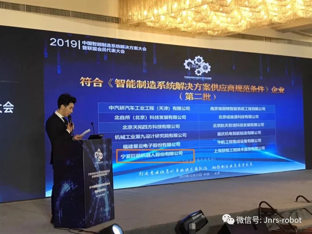 近期在北京召開的2019年中國智能制造系統(tǒng)解決方案大會(huì)上,經(jīng)全國遴選、企業(yè)申請(qǐng)?jiān)u審、最終確定:第二批35家符合國家智能制造系統(tǒng)集成規(guī)范條件企業(yè)。在會(huì)議上進(jìn)行了名單發(fā)布,巨能機(jī)器人名列其中,目前全國各行業(yè)共計(jì)117家。這也是國家對(duì)巨能公司目前行業(yè)能力的認(rèn)可。本次會(huì)議由工信部副部長辛國斌、工程院柴天佑院士等各省市工信部門,企業(yè)各界參加。會(huì)議上對(duì)中國智能制造系統(tǒng)供應(yīng)商的發(fā)展提供了政策方向建議。