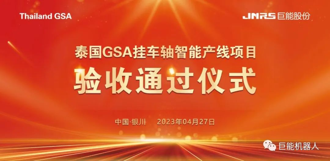 4月27日上午,“泰國(guó)GSA掛車(chē)軸智能產(chǎn)線(xiàn)項(xiàng)目驗(yàn)收通過(guò)儀式”在巨能公司舉行,銀川經(jīng)開(kāi)區(qū)黨工委委員、管委會(huì)副主任樊斌宣布項(xiàng)目正式開(kāi)機(jī)自動(dòng)運(yùn)行,泰國(guó)GSA項(xiàng)目管理團(tuán)隊(duì)、產(chǎn)線(xiàn)供應(yīng)商伙伴、媒體記者和巨能公司員工共同出席見(jiàn)證。