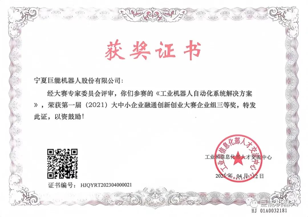 4月12日,由工信部人才交流中心、黑龍江省工信廳主辦的第一屆大中小企業(yè)融通創(chuàng)新創(chuàng)業(yè)大賽決賽暨頒獎(jiǎng)儀式在哈爾濱舉行。大賽吸引了來(lái)自浙江、天津、重慶、寧夏等全國(guó)多地企業(yè)和團(tuán)隊(duì)報(bào)名參賽,其中通過(guò)審核項(xiàng)目達(dá)到260個(gè),最終40個(gè)項(xiàng)目入圍總決賽,經(jīng)專家評(píng)委現(xiàn)場(chǎng)評(píng)選,由巨能股份報(bào)送的《工業(yè)機(jī)器人自動(dòng)化系統(tǒng)解決方案》,榮獲企業(yè)組三等獎(jiǎng)。