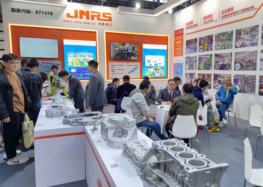 開展首日,位于E館的工業(yè)機(jī)器人及自動化主題館人頭攢動,巨能機(jī)器人展臺前吸引了眾多制造業(yè)同仁的駐足關(guān)注。本屆展會巨能機(jī)器人通過智能工廠、柔性制造、新技術(shù)應(yīng)用、實(shí)戰(zhàn)案例四大板塊內(nèi)容,向金屬加工行業(yè)帶來眾多可落地可實(shí)施的智能制造系統(tǒng)解決實(shí)戰(zhàn)方案。