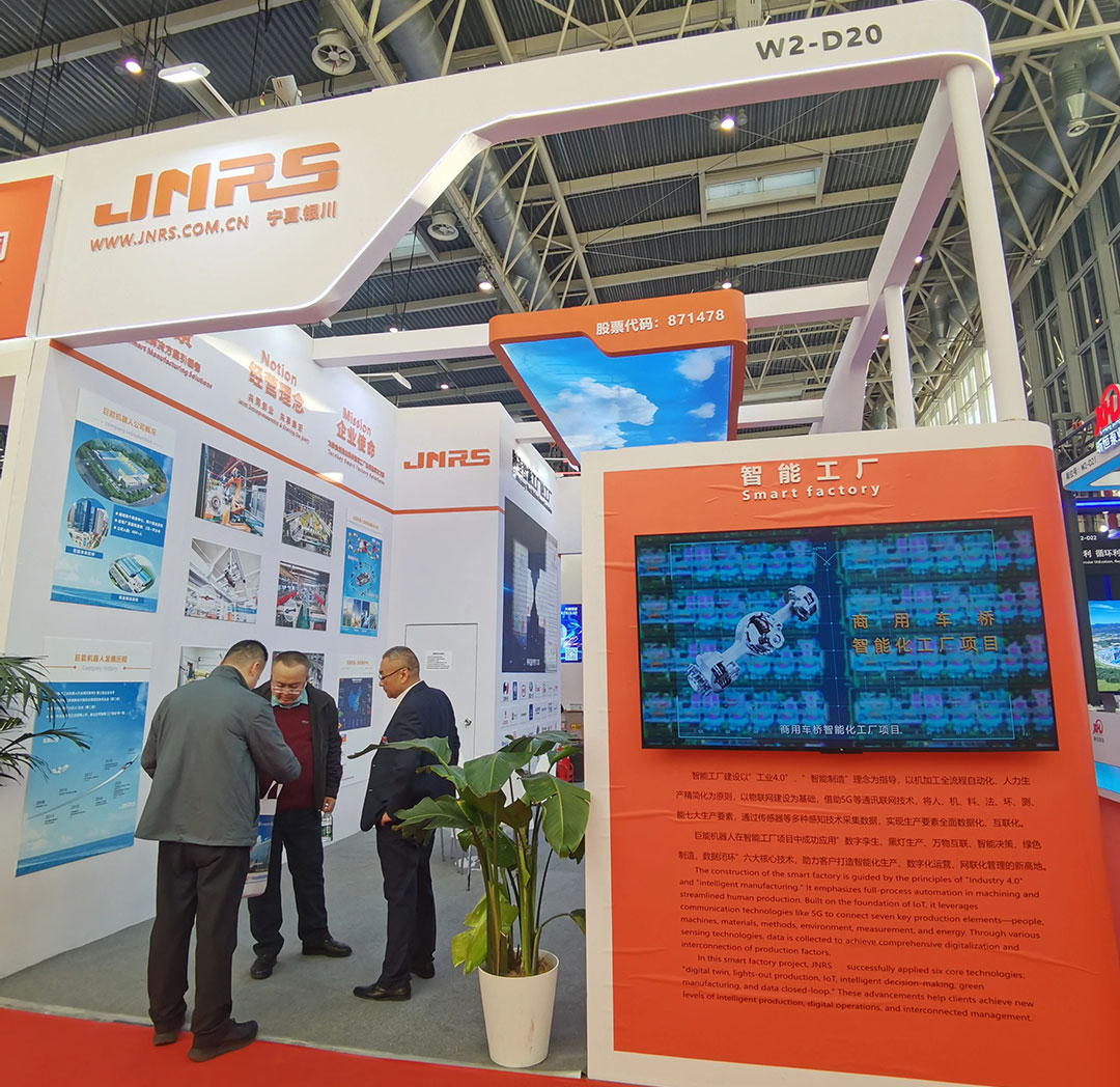開(kāi)幕當(dāng)日,寧夏回族自治區(qū)黨委委員、常委、副書(shū)記莊嚴(yán)一行蒞臨巨能機(jī)器人公司展位指導(dǎo)布展工作,公司總經(jīng)理李志博就公司發(fā)展和參展準(zhǔn)備情況進(jìn)行了詳細(xì)匯報(bào)。本屆鏈博會(huì),巨能機(jī)器人以“制造智能工廠”為展示主題,設(shè)置智能工廠整體解決方案、柔性制造產(chǎn)線解決方案、智能制造新技術(shù)應(yīng)用解決方案三大板塊,通過(guò)眾多特色鮮明的實(shí)戰(zhàn)應(yīng)用案例,全面展示公司為制造業(yè)企業(yè)提供智能化產(chǎn)線解決方案的綜合實(shí)力。